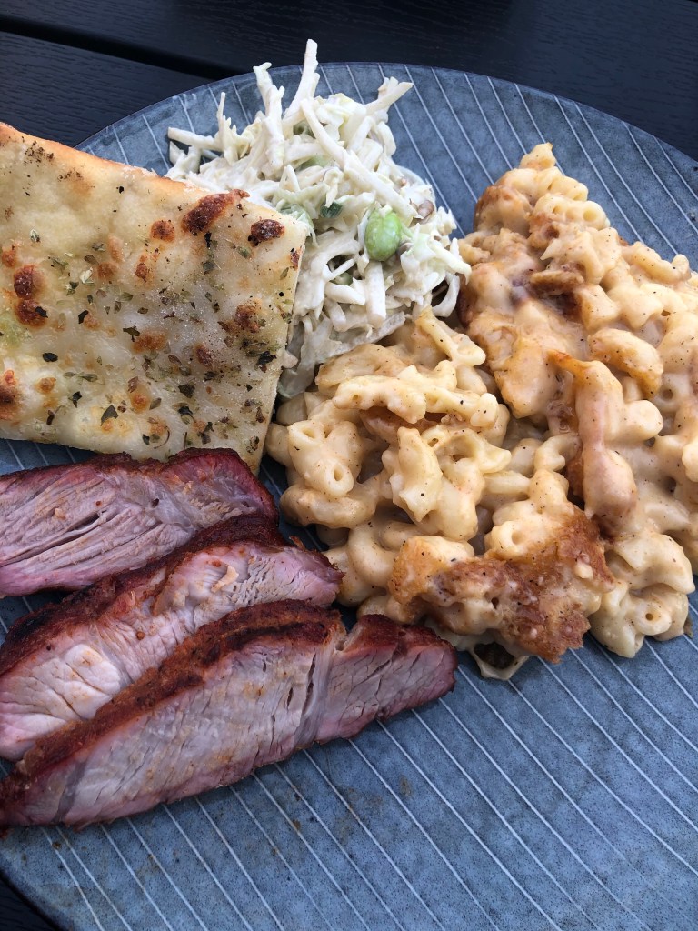 I dag var der tid til at kæle lidt for maden. Så det blev en lækker langtidsstegt nakkekotelet af frilandsgris, mac n cheese, hjemmelavet hvidløgsbrød og en lækker spidskålssalat. Mummemum